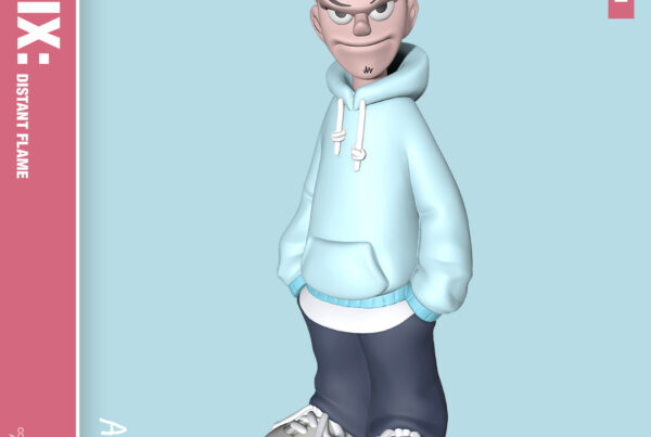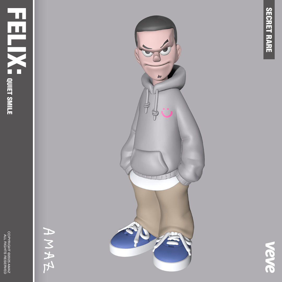 가슴에 새겨진 작은 핑크색 미소는 무심한 겉모습 아래 감춰진 아티스트의 온기를 상징합니다. 이 미소는 Felix의 내면 세계를 드러냅니다 — 다른 사람에게 기대기를 꺼리면서도, 마음 깊은 곳에 조용한 미소를 간직하고 있는 인물의 모습을.